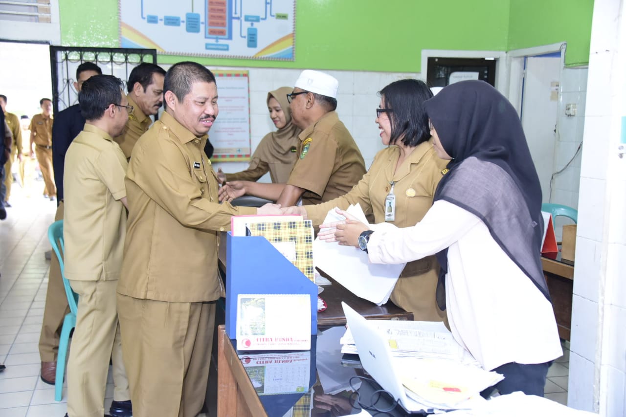 MANDAU, seputarriau.co - Pasca cuti lebaran Hari Raya Idul Fitri 1440 Hijriyah, Bupati Bengkalis Amril Mukminin melakukan pemantauan/Inspeksi Mendadak (Sidak) pada beberapa kantor dan dinas di Kecamatan Pinggir, Mandau dan Bathin Solapan, Senin (10/06).