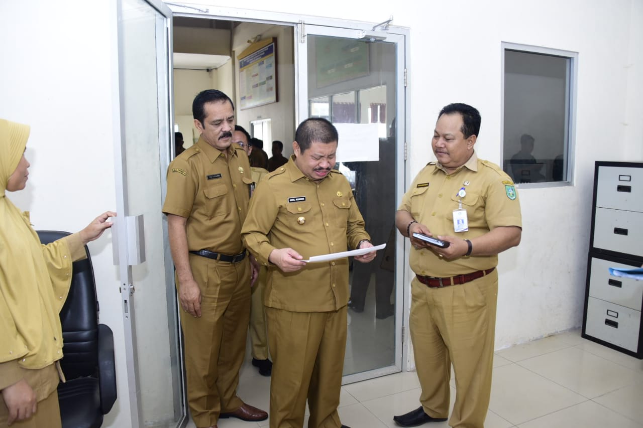 Pada saat tiba di tempat melakukan Sidak, Bupati Bengkalis langsung melihat absensi pada kantor tersebut dan langsung memeriksa satu persatu ruangan.