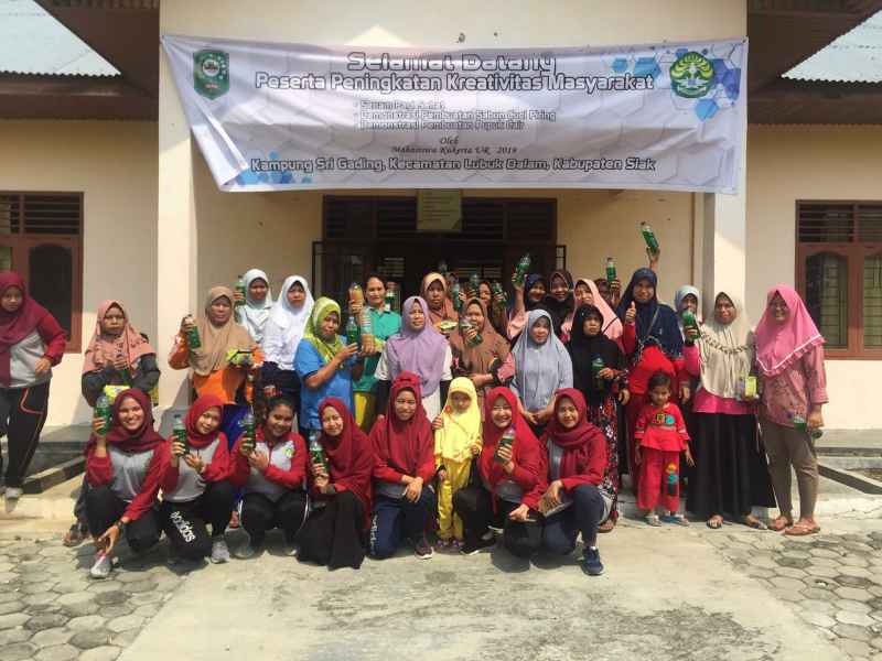 SIAK, seputarriau.co - Peserta KUKERTA UNRI 2019 di kampung Srigading Kabupaten Siak melaksanakan demonstrasi pembuatan produk pupuk organik cair dan sabun cuci piring. Acara demonstrasi dilaksanakan di ruangan aula kantor desa kampung Sri Gading di dahului dengan senam pagi sehat sebagai pembuka acara demonstrasi, Sabtu lalu (03/08)