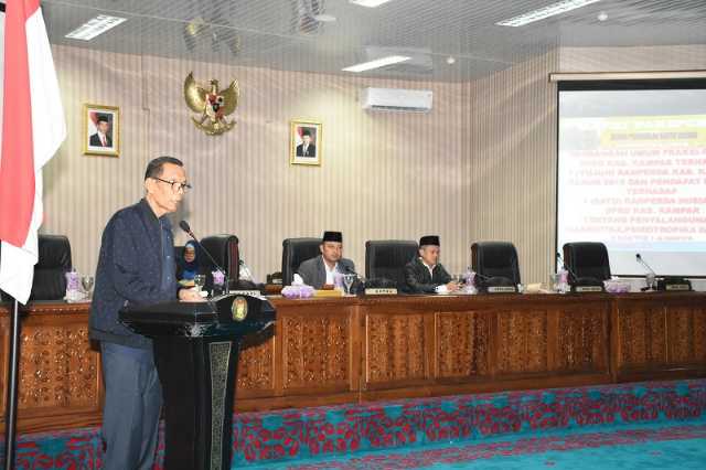 Aziz Zaenal dalam penyampaian pandangan pemerintah pada KUA-PPAS mengaku bahwa proyeksi APBD Kampar 2019 sebesar 2 Triliun 399 miliar sedangkan besaran belanja langsunng dan tidak langsung sebesar 2 triliun 444 miliar.