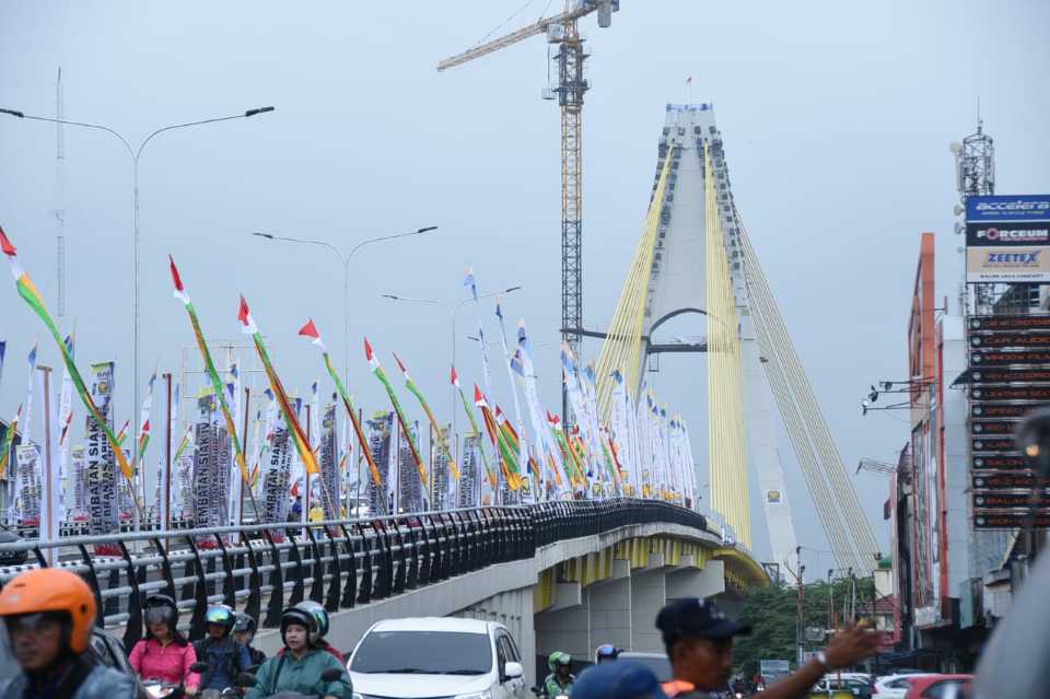 PEKANBARU, seputarriau.co - Bupati Bengkalis Amril Mukminin hadiri peresmian Jembatan Abdul Jalil Alamuddin Syah atau Mahrum Bukit (Jembatan Siak IV) di Pekanbaru, Kamis (14 /02)