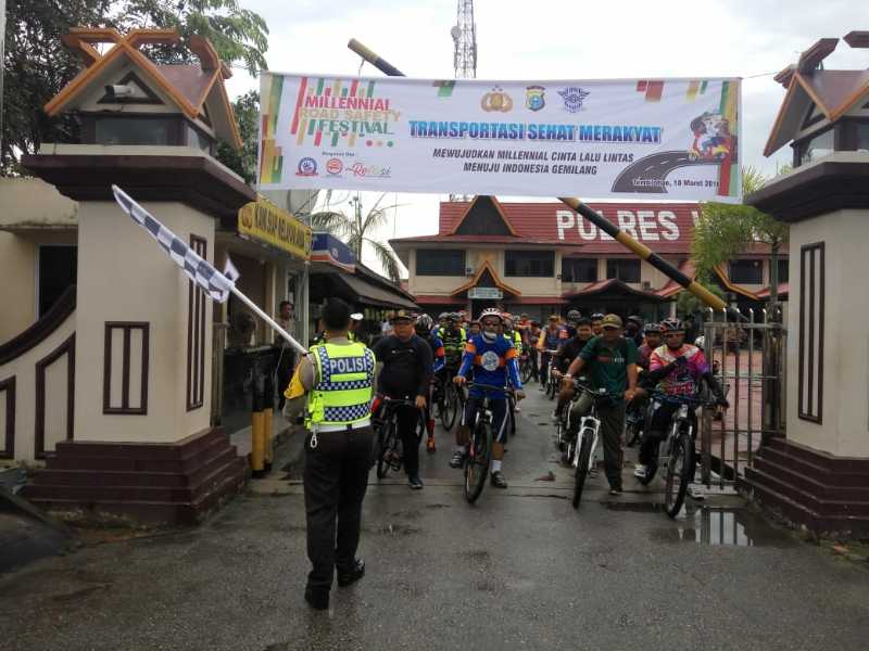 "Hari ini, kegiatan TSM pesertanya 150 orang yang terdiri dari dua komunitas sepeda dan Polisi Cilik serta masyarakat, para peserta melakukan Start dimulai dari Mapolres Inhil dan Finish di area Car Free Day di Jalan Swarna Bumi tepatnya di Kantor BPBD Kabupaten Inhil. Alhamdulillah, antusias peserta cukup tinggi dan di sambut hangat oleh masyarakat," terang AKP Anindhita Rizal.