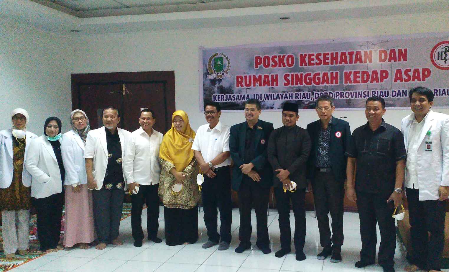 Ketua PDUI, dr Abdullah Qayyum MM, Ketua Perhimpunan PDSP, PDSM, PDPP Direktur RS Se-Kota Pekanbaru Dan Seluruh Dokter Se-Riau dalam acara peresmian Rumah singgah Kedap Asap dan Posko Kesehatan.