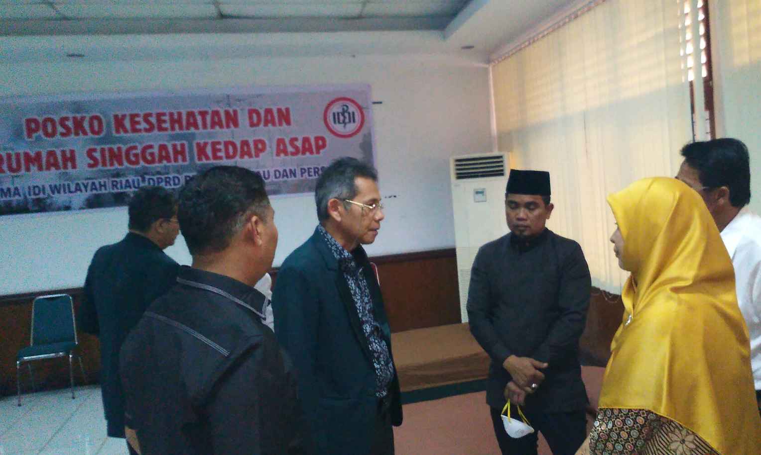 PEKANBARU, seputarriau.co -Bencana kabut asap yang masih menyelimuti Provinsi Riau hingga saat ini, Menyikapi penanggulangan korban kabut Asap Di Riai, IDI Wilayah Riau Bersama PERSI Riau dan DPRD provinsi Riau Menggelar Rumah singgah Kedap Asap dan Posko Kesehatan di Kantor Dewan DPRD Riau, Selasa (18/09)