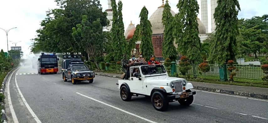 Semua personil dan perlengkapan bergerak secara serentak di 6 Kab/Kota yang melaksanakan PSBB sesuai rute yang telah ditentukan guna memutus penularan Covid-19 di Provinsi Riau.