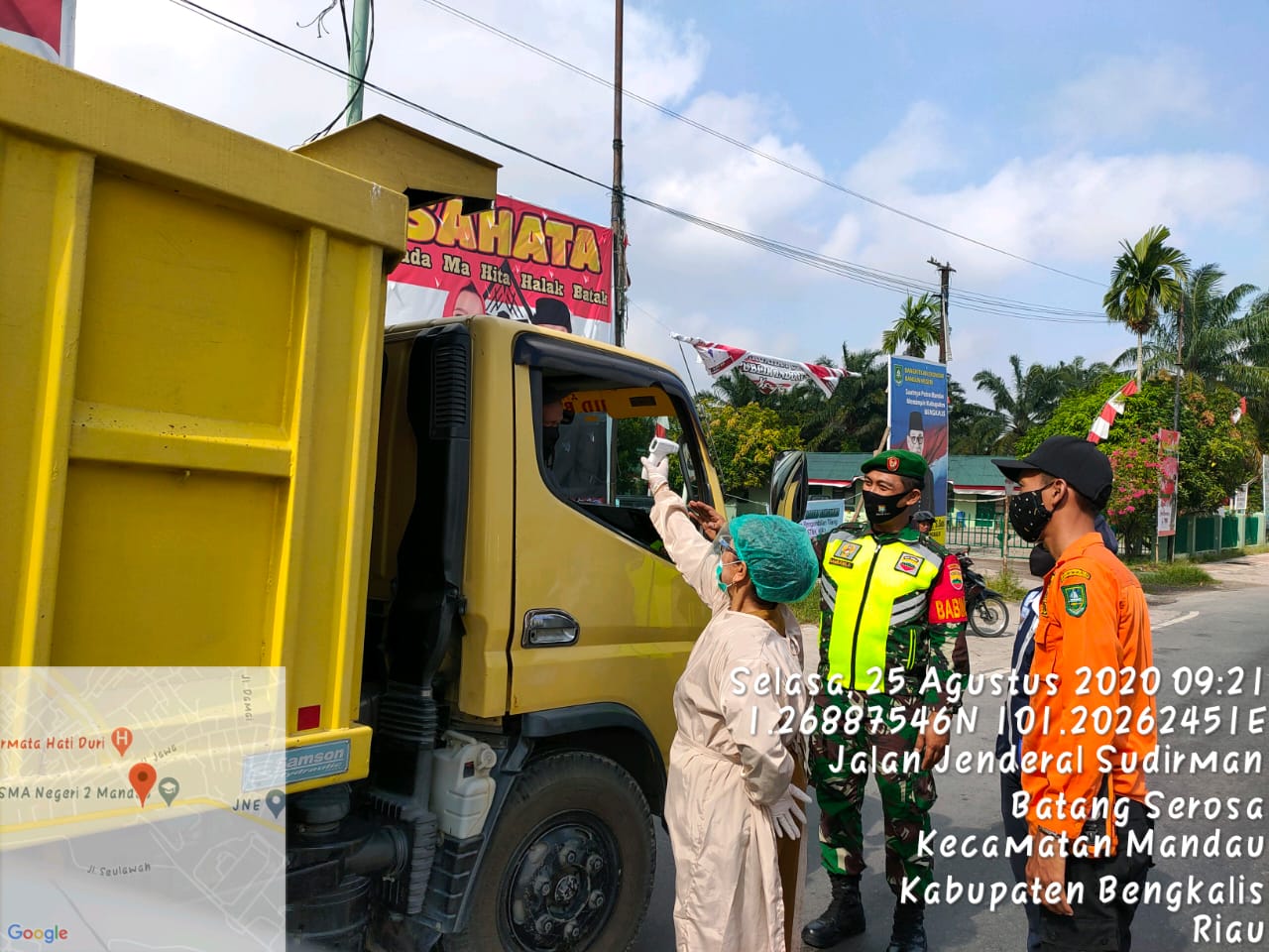Secara gabungan Koramil 04/Mandau melalui Kopda Bambang H, BPBD Dinas Kesehatan, Sat Pol PP, Dinas Perhubungan, Polsek Mandau, Dinas Perindustrian dan Perdagangan terus melaksanakan kegiatan pendisiplinan kesehatan pada pos Simpang Pokok Jengkol Kecamatan Mandau, Senin (25/8/20) sekira pukul 9.30 Wib.