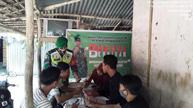 MANDAU, seputarriau.co - Babinsa Koramil 04/Mandau Kodim 0303/Bengkalis Serma Suprapto , membantu kegiatan belajar secara Daring bagi anak yang kurang mampu bertempat di Desa MuarA Basung Kecamatan Pinggir Kabupaten Bengkalis, Jumat (18/9/20).