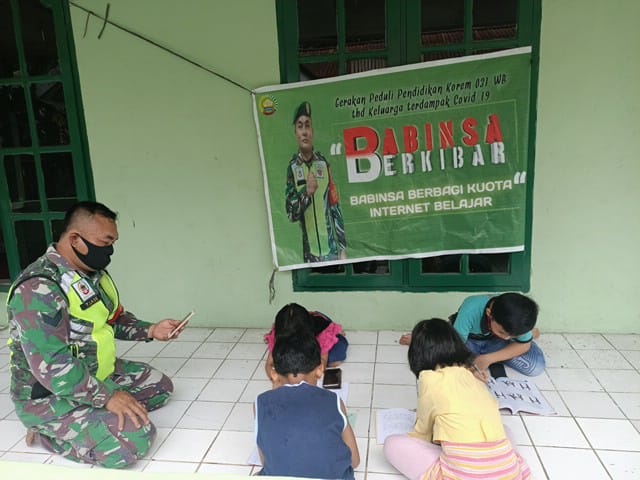 TALANG MUANDAU, seputarriau.co - Belajar daring atau belajar dirumah ini merupakan Program Gerakan Peduli Pendidikan atau Program Babinsa Berkibar atau Babinsa Berbagi Kuota Internet secara gratis kepada siswa terdampak Covid-19 di Kecamatan se-Kabupaten Bengkalis. Ternyata program belajar daring ini sangat diminati oleh kalangan pelajar seperti yang dilakukan di Desa Beringin Kecamatan Talang Muandau Kabupaten Bengkalis.