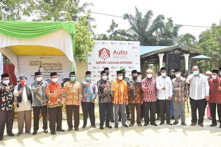 Foto : Gubri Syamsuar foto bersama saat peletakan batu pertama asrama santri Ponpes AUFIA Global Islamic Boarding School Riau