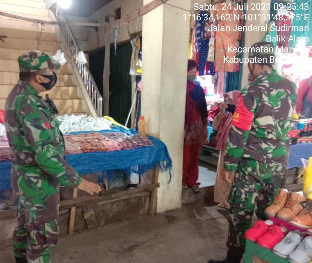 TNI Koramil 04/Mandau Lakukan Pengecekan Protokol Kesehatan C-19 di Pasar Sartika Duri