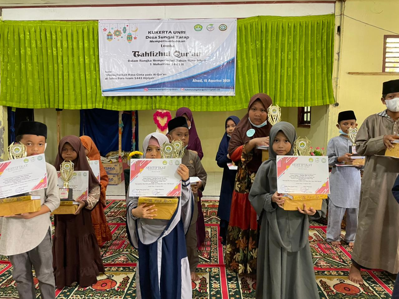 PEKANBARU, seputarriau.co  - Sebanyak 80 orang murid mulai dari tingkat taman kanak-kanak (TK) dan sekolah dasar (SD) dari Dusun 1, Dusun 2, Dusun 3, dan Dusun 4 Desa Sungal Tarap mengikuti lomba Tahfidzul Quran yang digelar oleh Mahasiswa Kukerta Universitas Riau Desa Sungai Tarap.