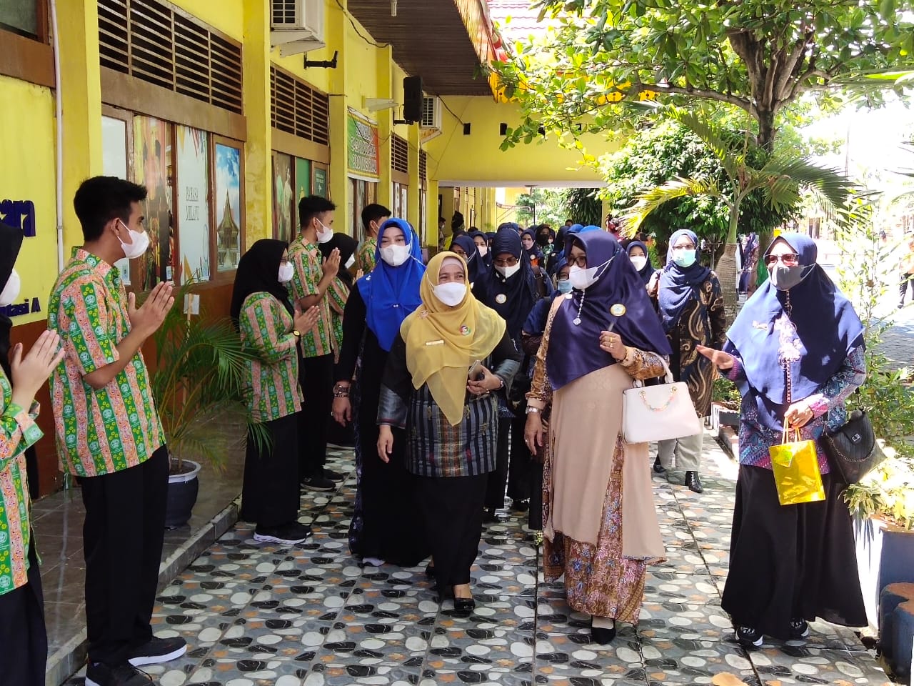 Pekanbaru- Sekitar 30 an pengurus perpustakaan mewakili sekolah di Kota Dumai yang tergabung di dalam Asosiasi Tenaga Perpustakaan Sekolah Indonesia (ATPUSI) kota Dumai melakukan kunjungan ke SMAN 5 Dumai, Kamis (11/11/21). Rombongan dari kota Dumai ini disambut dengan antusias dan iringan kompang dan puisi dari siswa SMAN 5 Pekanbaru.