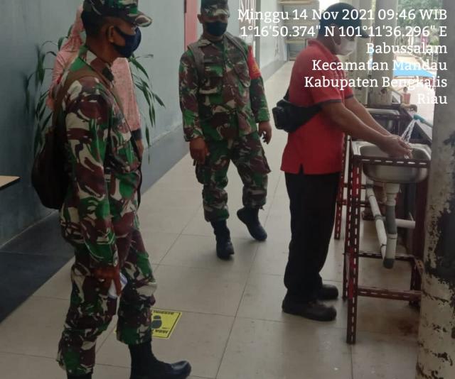 MANDAU, seputarriau.co - TNI Koramil 04/Mandau dipimpin oleh Pelda Armen bersama Tim lakukan kegiatan penerapan 3 M guna memutus mata rantai covid-19 yaitu Menggunakan masker, Manjaga jarak dan Mencuci tangan dititik keramaian sesuai protokol kesehatan yang dilaksanakan di Mall City Mandau.