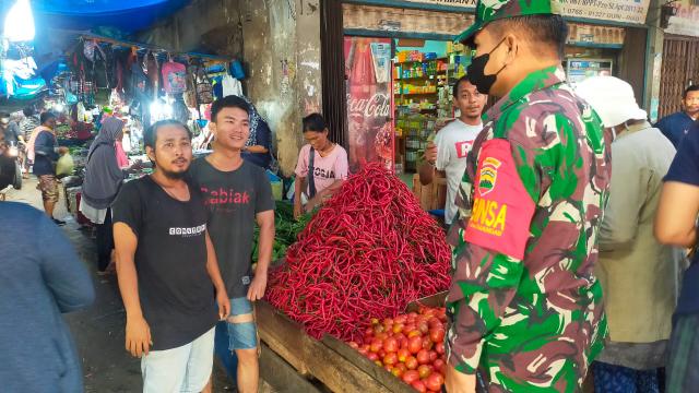 TNI Koramil 03/Mandau Cek Kegiatan Warga Pasar Serta Terapkan Disiplin Protkes C-19
