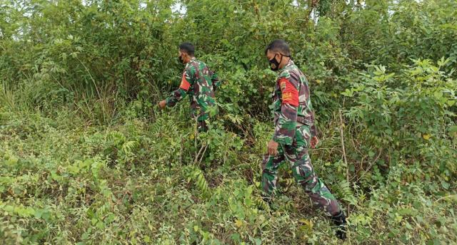 BATSOL,seputarriau.co - Rangka pencegahan kebakaran Hutan dan Lahan, anggota Koramil 03/ Mandau,Kodim 0303/Bengkalis yang di pimpin oleh Sertu Robi dan Sertu Handoko dari Desa Petani menuju Desa Air Kulim Kecamatan Batsol,Kabupaten Bengkalis lakukan penelusuran Karhutla diwilayah binaannya di (Co. 1°16'23,472"N  101°8'57,03"E).