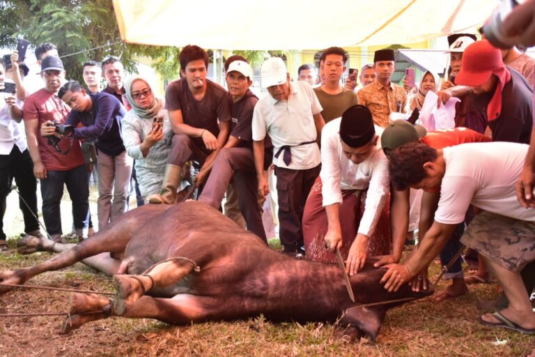 Hewan qurban berupa seekor kerbau yang diserahkan Kamsol tersebut, langsung disembelih dihadapan panitia dan masyarakat yang berada di wilayah Rumah Dinas Bupati Kampar.