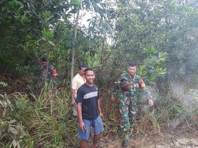 BATSOL,seputarriau.co - TNI Koramil 03/ Mandau,Kodim 0303/Bengkalis yang dipimpin oleh Kopda Dedi dan Praka Alif Alfiando bersama masyarakat melakukan penanganan penanggulangan pencegahan karhutla dan sosialisasi tentang Karhutla diwilayah binaannya pada Kamis (04/08/2022).