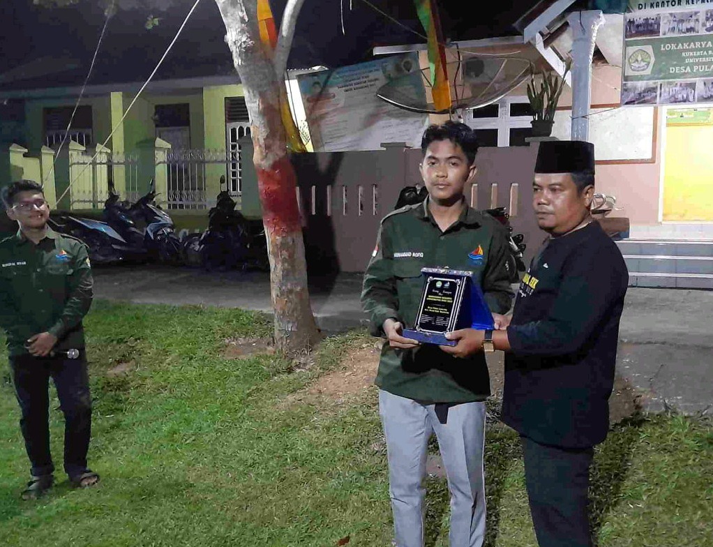 Sebagai kenang-kenangan, Mahasiswa Kukerta Unri memberikan cendramata berupa plakat dan Foto yang di serahkan langsung kepada Pj Kepala Desa.