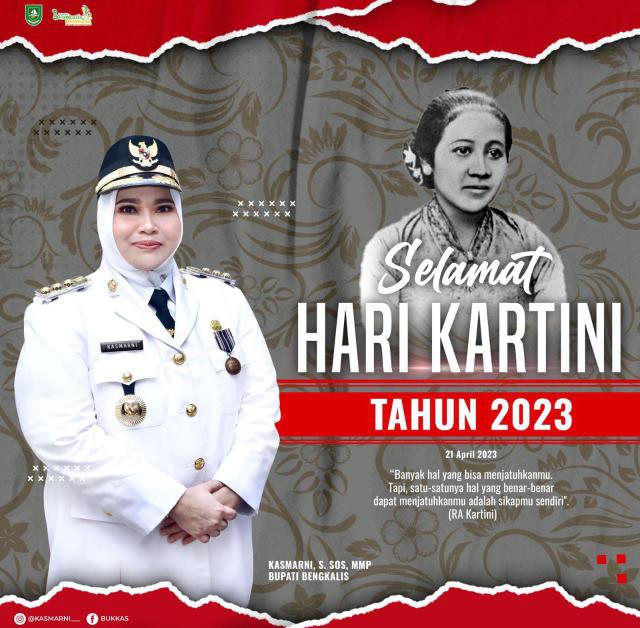 ‘Selamat Hari Kartini Tahun 2023 kepada seluruh Perempuan Indonesia dan Perempuan Kabupaten Bengkalis khususnya, bersama kita bangun Kabupaten Bengkalis Bermasa dan bersama kita bangun Desa ramah anak dan ramah perempuan di Negeri junjungan ini, melalui emansipasi serta peran perempuan yang lebih besar lagi.” Pungkas Kasmarni.