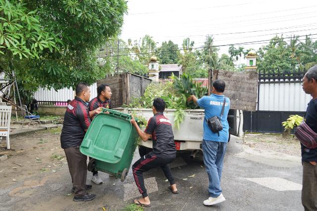 Gotong Royong di Pekarangan Kantor Camat Mandau Menyambut Bulan Suci Ramadhan 1445H/2024M