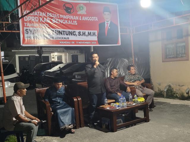DURI, seputarriau co - Anggota Komisi IV DPRD Kabupaten Bengkalis dari Partai PDI-P Syafroni Untung, S.H.,M.H kembali menggelar reses atau serap aspirasi. Reses ini dilakukan di rumah kediaman Bapak Hendra Kurniawan.