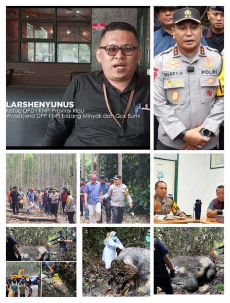 PEKANBARU, seputarriau.co -- Ketua Dewan Pengurus Daerah (DPD) tingkat I, Komite Nasional Pemuda Indonesia (KNPI) Provinsi Riau beserta Jajaran bidang Lingkungan Hidup, Kehutanan dan Perkebunan turut menyampaikan Apresiasi yang setinggi-tingginya kepada Kepala Kepolisian Daerah (Kapolda) Riau, Irjen Pol Dr Herry Heryawan S.IK MH M.Hum, karena terbukti serius dalam mengungkap Kasus Kematian seekor Gajah di Kawasan Taman Nasional Tesso Nilo (TNTN), di Kabupaten Pelalawan.