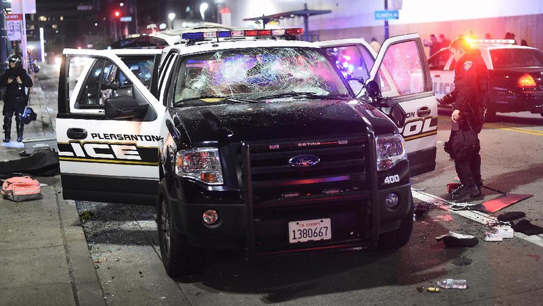 Dilansir Al Jazeera, Sabtu (12/11/2016), ribuan pendemo melempar sejumlah objek ke anggota polisi yang melakukan penjagaan di Portland, Oregon. Sumber kepolisian Portland mengatakan pendemo juga merusak tempat parkir.