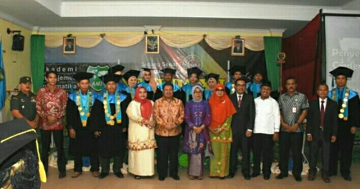foto : Foto bersama Bupati Bengkalis, Amril mukminin dan ketua TP PKK Bengkalis beserta civita s akademis dan para undangan di gedung Amik Mitra Gama