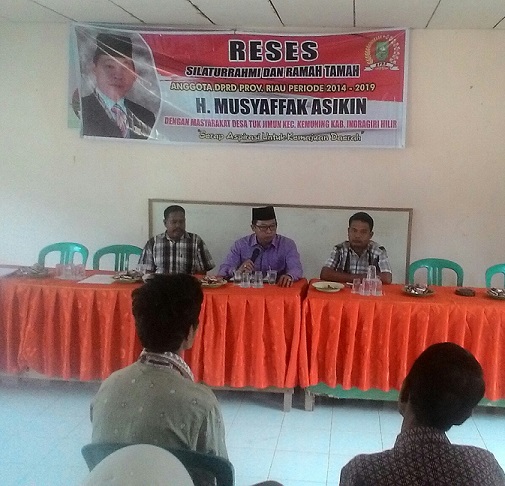 KEMUNING, seputarriau.co - Anggota DPRD Provinsi Riau H. Musyafak Asikin melaksanakan reses dibeberapa desa di kecamatan kemuning yakni desa tukjimun, desa lubuk besar dan desa skayan.