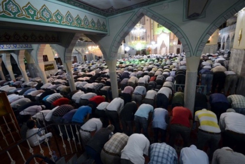 Foto : Warga Muslim Di yunani Melakukan Solat Berjamaah di Mesjid Baru didirikan di Yunani