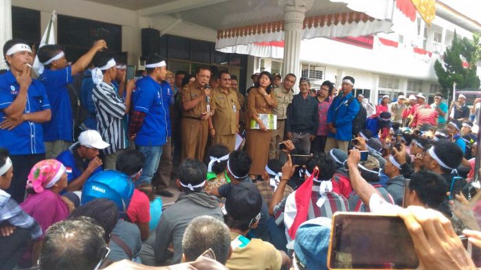 PEKANBARU, seputarriau.co - Setelah menerima sejumlah perwakilan, Kepala Dinas Tenaga Kerja dan Tranmigrasi (Disnakertran) Rasyidin Siregar kemudian menerima dan menyampaikan beberapa poin Kepada ratusan buruh PT Duta Palma Nusantara Sei Kuantan yang menggelar aksi soal perlakuan yang tidak adil dari perusahaan.