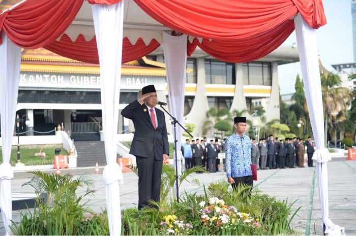 PEKANBARU, seputarriau.co - Gubernur Riau Arsyadjuliandi Rachman pimpin upacara Hari Kesaktian Pancasila. Pada kesempatan ini, juga dibacakan ikrar Aparatur Sipil Negara (ASN) tentang kesetiaan terhadap Pancasila.