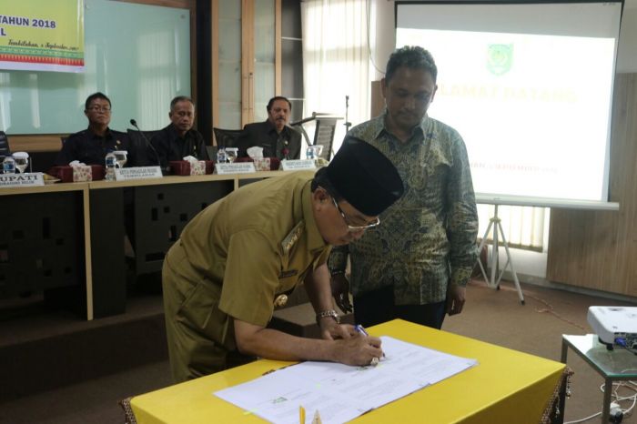 Bupati Inhil Bersama Panwaslu Inhil Tandatangani NPHD
