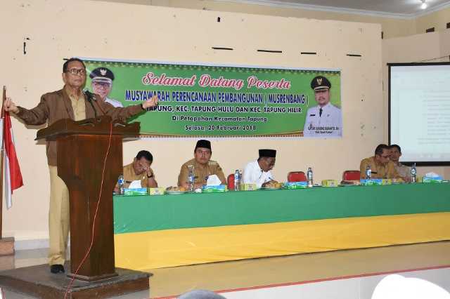 Demikian disampaikan Bupati Kampar H. Azis Zaenal, SH, MM saat membuka Musyawarah Rencana Pembangunan (Musrenbang) Rencana Kerja Pembangunan Daerah (RKPD) di Kecamatan, untuk wilayah kecamatan Tapung, Tapung Hulu dan Tapung Hilir (wilayah V) di aula gedung guru Tapung di Petapahan, Selasa (20/2/18).