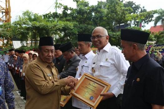 Prosesi penyerahan penghargaan tersebut dilakukan pada upacara peringatan Hari Ulang Tahun (HUT) Badan Pengawasan Keuangan dan Pembangunan (BPKP) Perwakilan Provinsi Riau di Pekanbaru, yang diberikan oleh Kepala BPKP Perwakilan Provinsi Riau, Dikdik Sadikin kepada Penjabat Sementara (Pjs) Bupati Inhil, Rudyanto dan disaksikan Plt Gubernur Riau, Wan Thamrin Hasyim, Rabu (30/5/2018).