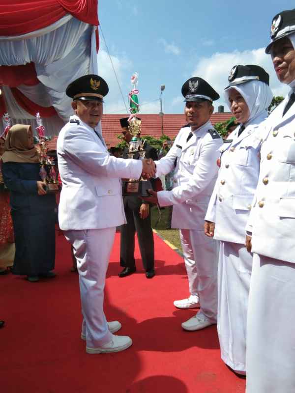 Usai Upacara HUT RI Ke 74, Camat Mandau Serahkan Piala Kepada Kepala Sekolah dan Lurah