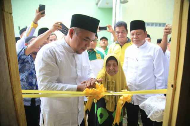 Labuhanbatu, seputarriau.co  - Bupati Labuhanbatu H. Andi Suhaimi Dalimunthe, ST. MT didampingi Camat Rantau Utara H. Turing Ritonga, ST.MM, Ketua Dewan Masjid Indonesia (DMI) Kabupaten Labuhanbatu Ustadz H. Rendi Fitra Yana, Lc.,M.H.I meresmikan Bedah Rumah Ibu Nurhalimah warga Jl. Gelugur By Pass Adam Malik Kelurahan Padang Bulan Kecamatan Rantau Utara Kabupaten Labuhanbatu Sumatera Utara, Minggu (8/12/2019).